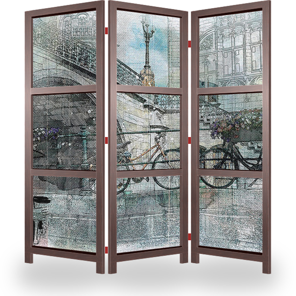 Ширма эконом отлично подойдет для временного размещения, рекламы, для отгораживания объектов интерьера и его дополнения. Лицевая сторона с изображением, обратная сторона открытый каркас