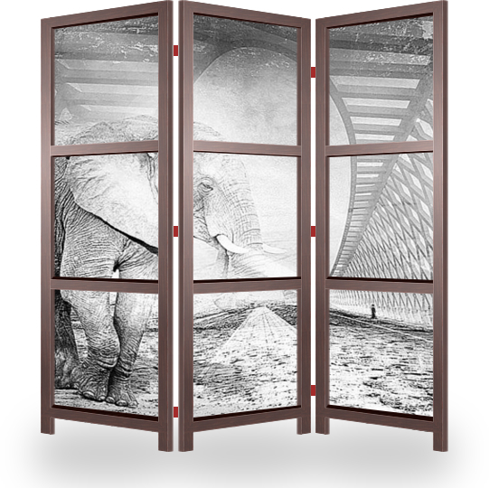 Ширма эконом отлично подойдет для временного размещения, рекламы, для отгораживания объектов интерьера и его дополнения. Лицевая сторона с изображением, обратная сторона открытый каркас