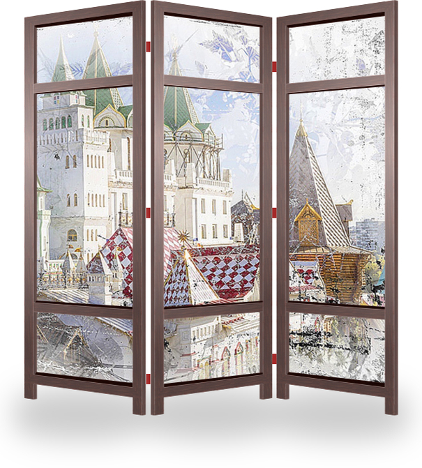 Ширма эконом отлично подойдет для временного размещения, рекламы, для отгораживания объектов интерьера и его дополнения. Лицевая сторона с изображением, обратная сторона открытый каркас