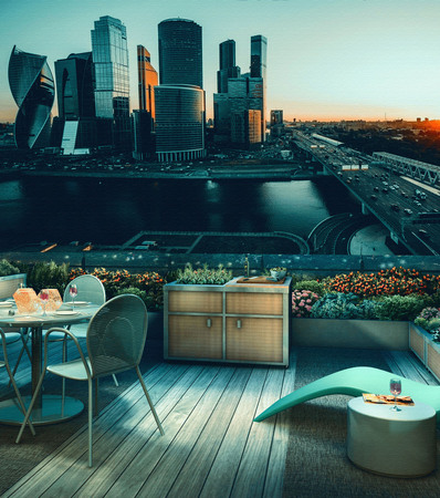 Вид с террасы на Москву.Такие фото обои подойдут для гостиной, спальни или комнаты отдыха.Станут хорошим дополнением современного интерьера.