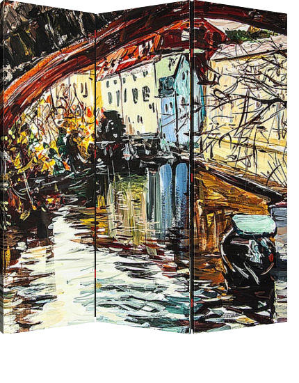 Описание ширмы Живопись, темпера , бумага, размеры 60х45, Прага, осень, река Чертовка, вода, листва