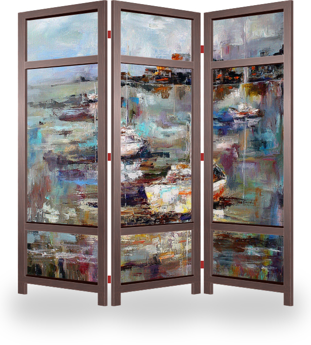 Описание ширмы Я люблю море, писать, рисовать, просто смотреть на него. В нем есть какое-то спокойствие и умиротворенность. А в лодках, уплывающих вдаль, незримо прячется наша тяга к приключениям и к новым открытиям.