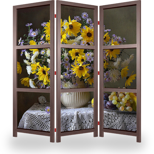 Ширма эконом отлично подойдет для временного размещения, рекламы, для отгораживания объектов интерьера и его дополнения. Лицевая сторона с изображением, обратная сторона открытый каркас