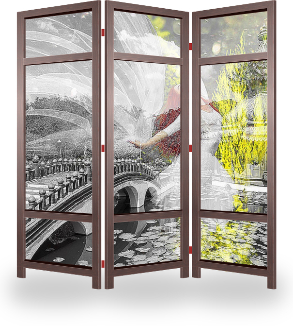 Ширма эконом отлично подойдет для временного размещения, рекламы, для отгораживания объектов интерьера и его дополнения. Лицевая сторона с изображением, обратная сторона открытый каркас