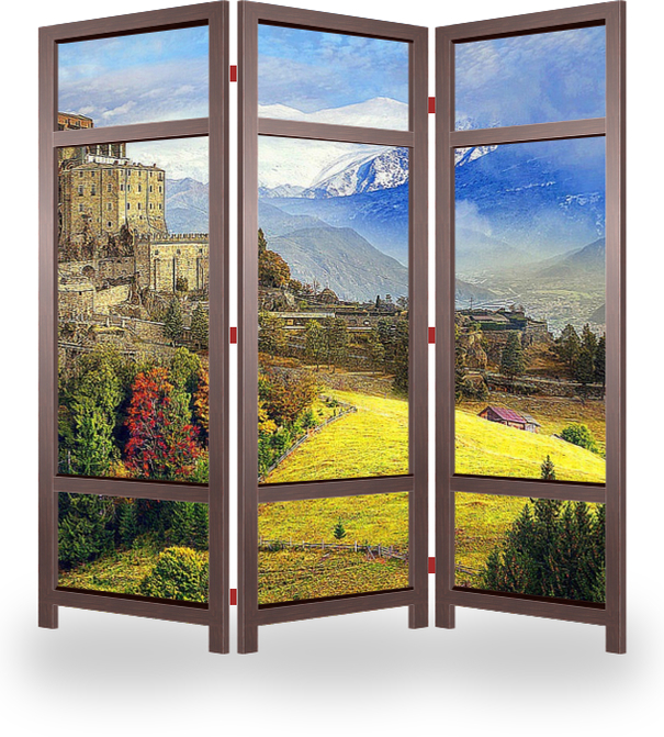 Ширма эконом отлично подойдет для временного размещения, рекламы, для отгораживания объектов интерьера и его дополнения. Лицевая сторона с изображением, обратная сторона открытый каркас