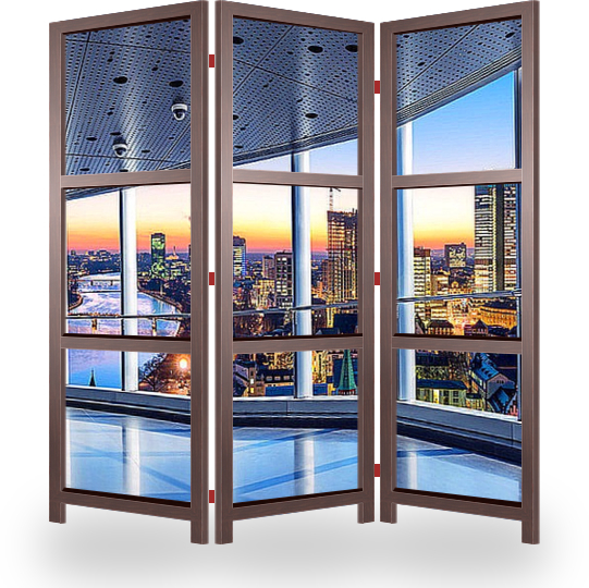 Ширма эконом отлично подойдет для временного размещения, рекламы, для отгораживания объектов интерьера и его дополнения. Лицевая сторона с изображением, обратная сторона открытый каркас