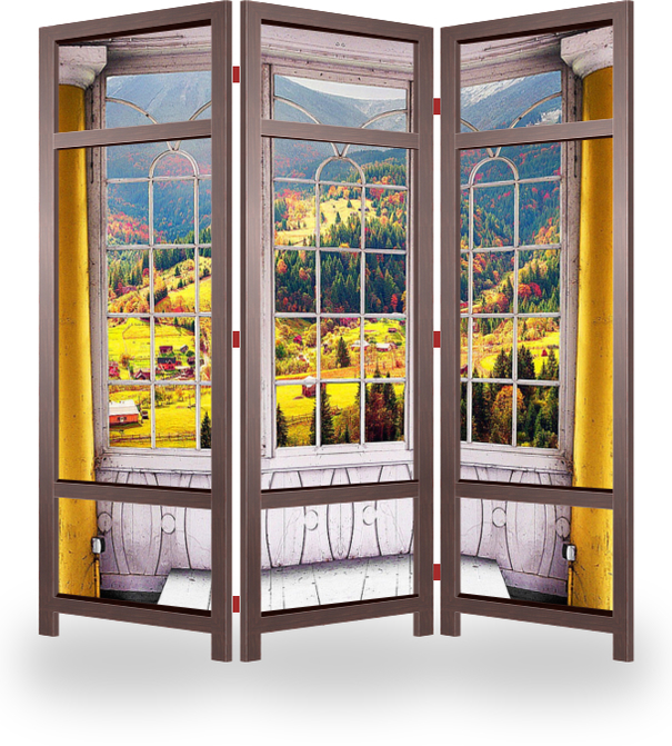 Ширма эконом отлично подойдет для временного размещения, рекламы, для отгораживания объектов интерьера и его дополнения. Лицевая сторона с изображением, обратная сторона открытый каркас