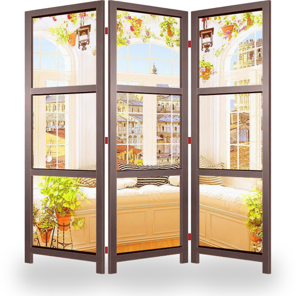 Ширма эконом отлично подойдет для временного размещения, рекламы, для отгораживания объектов интерьера и его дополнения. Лицевая сторона с изображением, обратная сторона открытый каркас