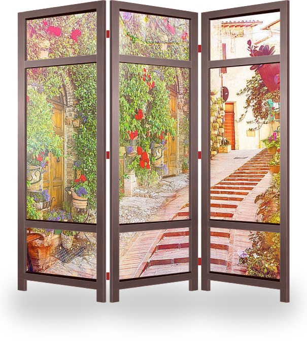 Ширма эконом отлично подойдет для временного размещения, рекламы, для отгораживания объектов интерьера и его дополнения. Лицевая сторона с изображением, обратная сторона открытый каркас