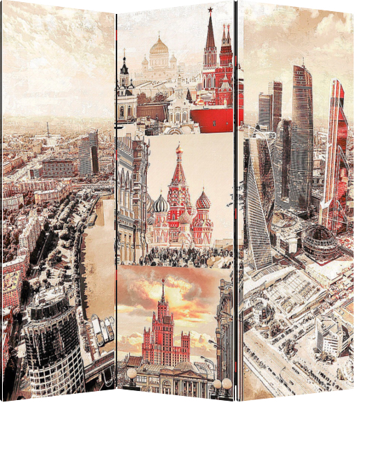 Описание ширмы Модульная картина с изображением неповторимой архитектуры Москвы в монохромном исполнении с красными акцентами украсит и дополнит Ваш интерьер. Прекрасно подойдет для спальни и гостиной.