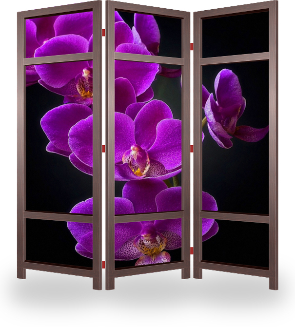 Описание ширмы постер с веткой цветущей орхидеи на черном фоне придаст изысканности и стиля любому помещению