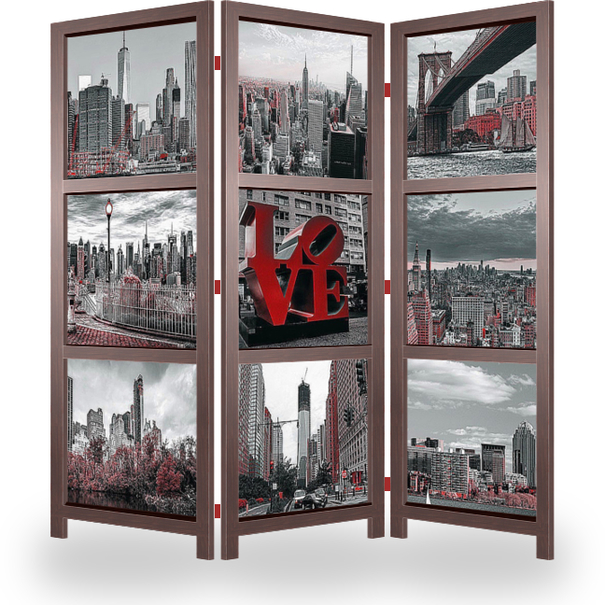 Описание ширмы Виды городов США, в монохромном исполнении.Такая работа станет хорошим дополнением современного интерьера, подойдёт для гостиной или комнаты отдыха