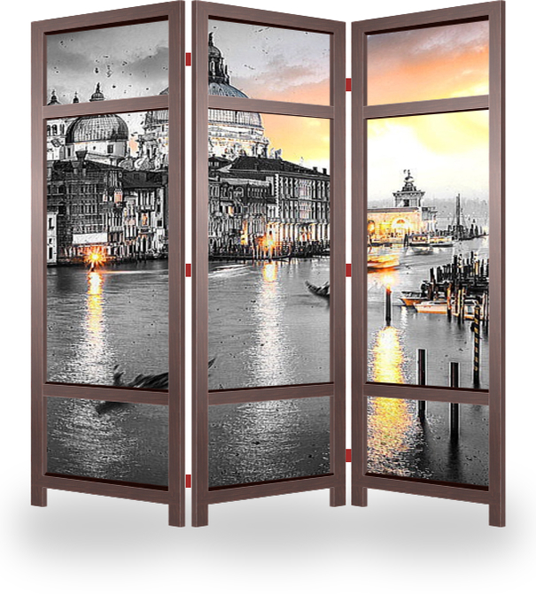 Описание ширмы Постер с изображением заката в Италии, в монохромном исполнении с яркими акцентами украсит и дополнит Ваш интерьер. Прекрасно подойдет для спальни и гостиной.
