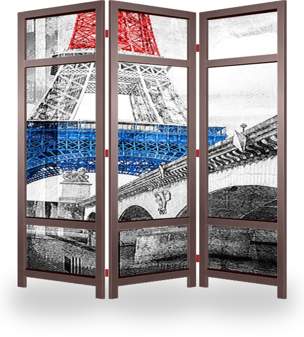 Описание ширмы Постер с изображением Эйфелевой башни в Париже, в монохромном исполнении с яркими акцентами украсит и дополнит Ваш интерьер. Прекрасно подойдет для спальни и гостиной.
