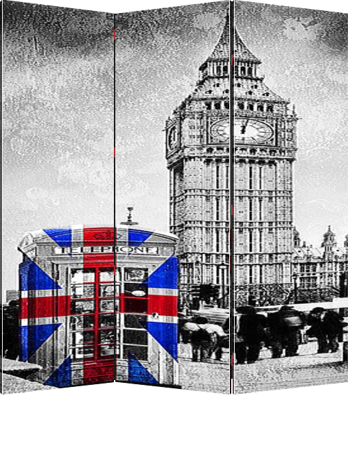 Описание ширмы Постер с изображением Биг-Бена и телефонной будки в Лондоне, в монохромном исполнении с яркими акцентами украсит и дополнит Ваш интерьер. Прекрасно подойдет для спальни и гостиной.