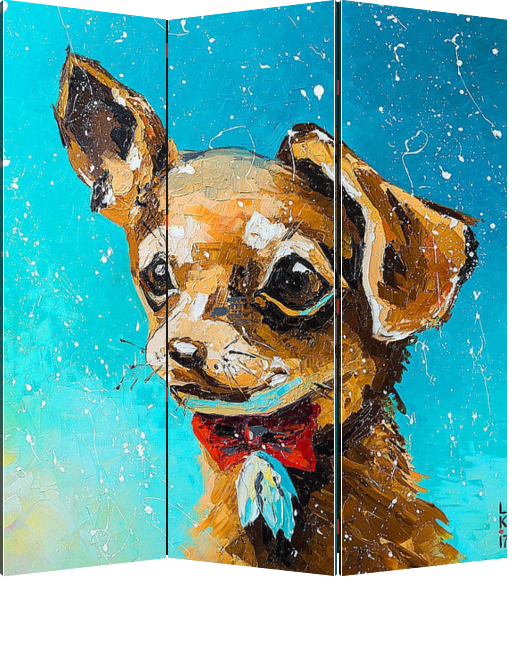 Описание ширмы Любовь Купцова - российская художница, работающая с различными материалами и техниками. Прежде всего это акварель, уголь и масло. Также занимается вышивкой, прижиганием по ткани, росписью стен.Самыми любимыми сюжетами являются животные, птицы, цветы