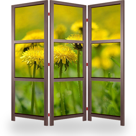 Описание ширмы В конце апреля - начале мая полянки покрываются богатыми солнечными коврами из всеми любимых одуванчиков, на радость насекомышам и людям. Эти ковры через пару недель превращаются в пушистые перины, а потом в жаркое засушливое наше лето исчезают совсе