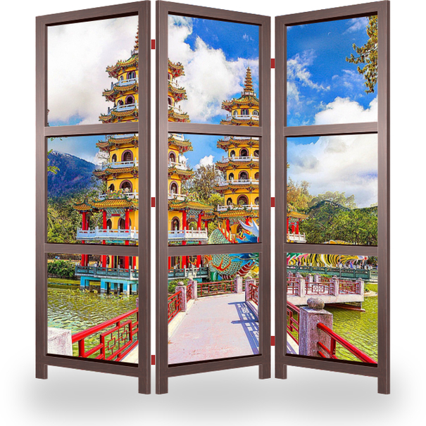 Описание ширмы Модульная картина с изображением неповторимой архитектуры и восточной культуры Таиланда в красочном саду украсит и дополнит Ваш интерьер. Прекрасно подойдет для спальни и гостиной.