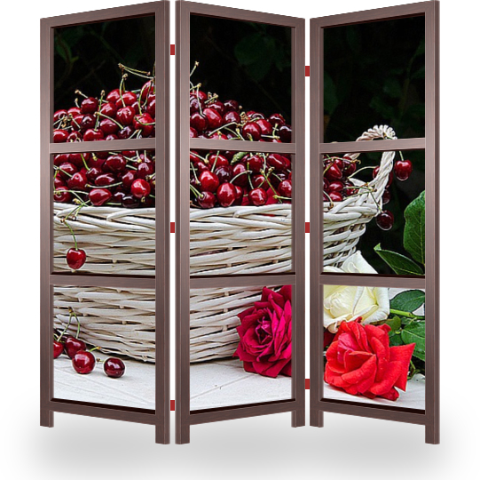 Описание ширмы Летний натюрморт с корзиной яркой черешни и розами с моего сада. Такой постер может украсить любое помещение вашего дома или квартиры, а так же отеля, загородного дома.