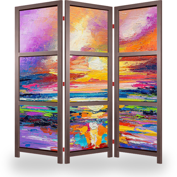 Ширма эконом отлично подойдет для временного размещения, рекламы, для отгораживания объектов интерьера и его дополнения. Лицевая сторона с изображением, обратная сторона открытый каркас