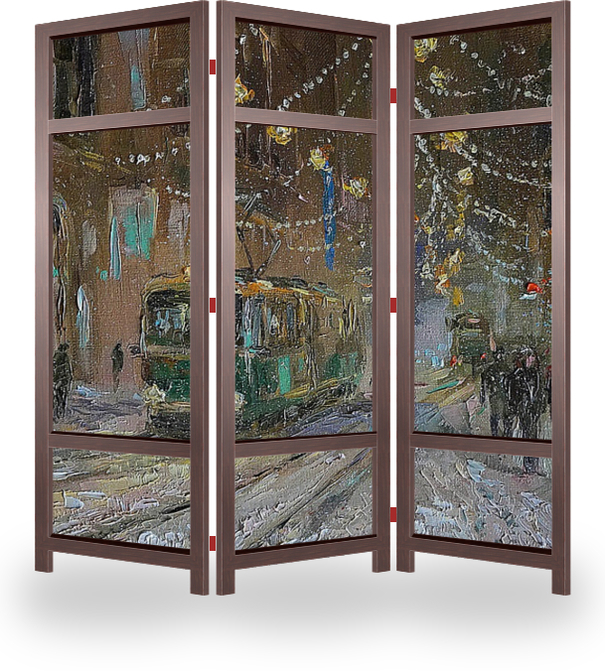 Описание ширмы ощущение праздника, предпраздничная суета, зима в городе, трамвай, хорошее настроение