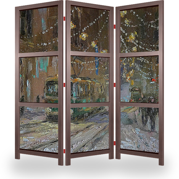 Описание ширмы ощущение праздника, предпраздничная суета, зима в городе, трамвай, хорошее настроение