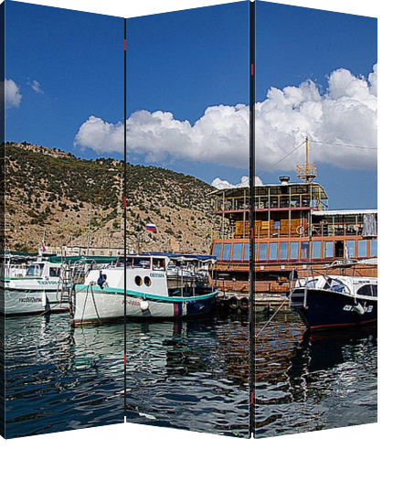 Описание ширмы Живописный вид на Балаклавскую бухту с лодками, яхтами, кораблями. Такой постер может украсить любое помещение вашего дома, квартиры, офиса, отеля, турфирмы.