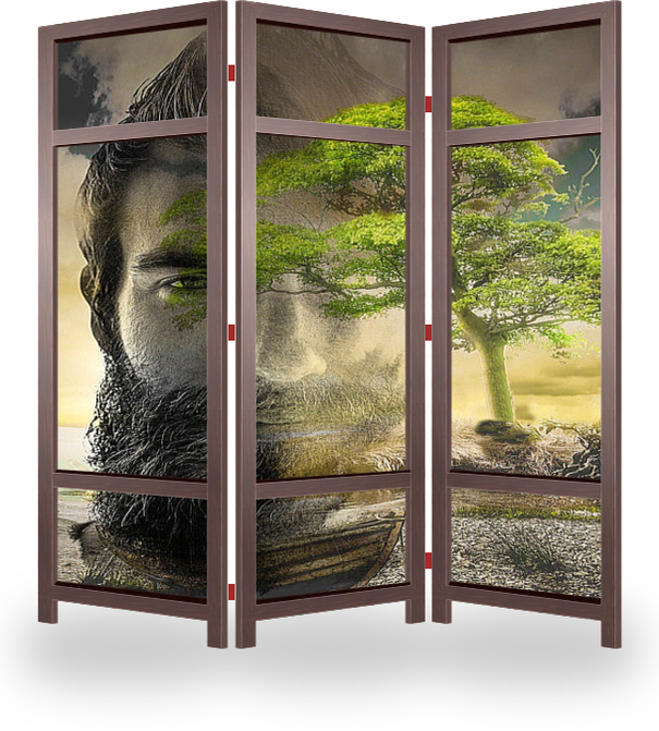 Описание ширмы Постер с изображением мужского портрета на фоне природы, отличное и интересное дополнение для любой комнаты