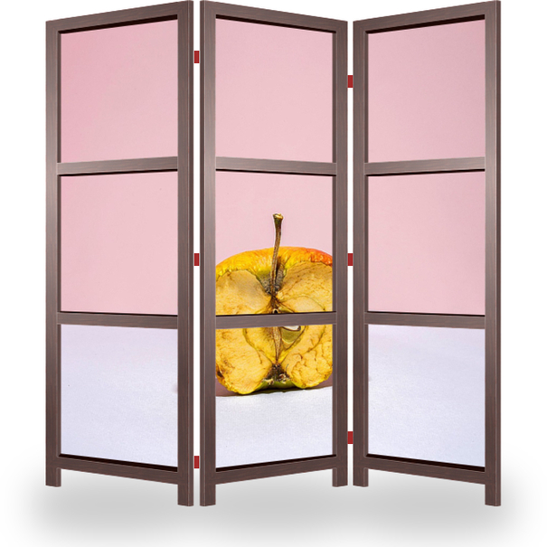 Описание ширмы Это абстрактная фотография, содержащая сочетание разных цветовых сочетаний и разрезанного яблока. Сочетание яркости и красочности фона, символизирующего молодость и мудрости старого яблока.