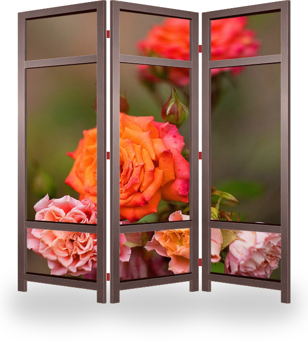 Описание ширмы Постер с нежными розами украсит ваш дом, придаст свежести вашим чувствам, напомнит вам моменты общения с природой, перенесет в мир красок и цветов, свежести, первозданной радости бытия...