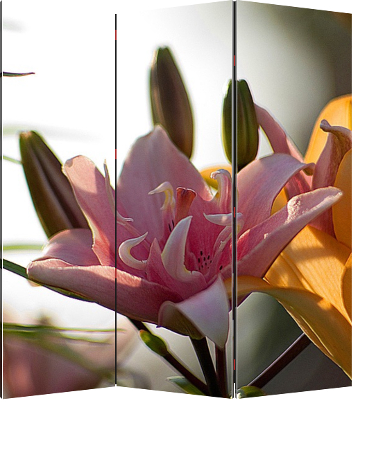 Описание ширмы Постер с нежными цветами украсит ваш дом, придаст свежести вашим чувствам, напомнит вам моменты общения с природой, перенесет в мир красок и цветов, свежести, первозданной радости бытия...