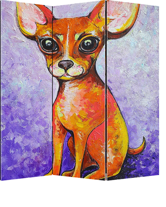 Описание ширмы Картина "Чихуахуа" станет чудесным украшением вашего интерьера, будь то гостиная, спальня, детская или офис. Картина выполнена яркими жизнерадостными красками, будет радовать Вас и приносить удачу!