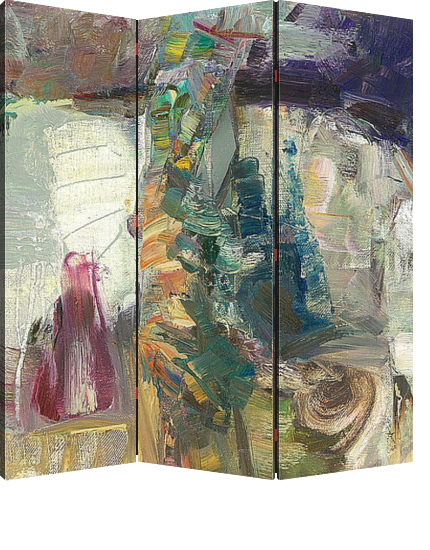 Описание ширмы живописный натюрморт, изображающий в абстрактной манере стеклянную колбу с красным вином и чашкой утреннего кофе на фоне старинной драпировки