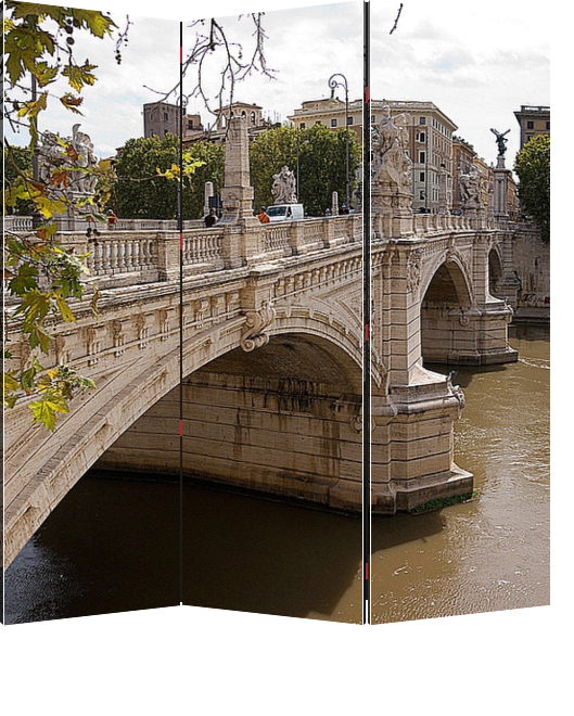 Описание ширмы Что вам приходит в голову при слове Рим? Вечный город? Набережные Тибра? Маленькие кафешки? Можно также упомянуть собор Святого Петра, Колизей, Пантеон, фонтан Треви, мост и замок Святого Ангела - Рим у каждого свой...