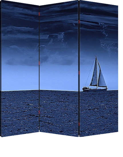 Описание ширмы Одинокий парусник плывет в ночном море при лунном свете*********************************************************************************************************************