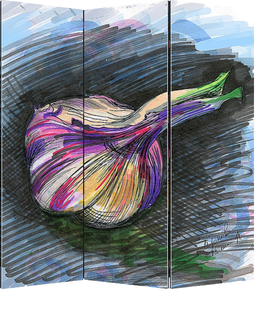 Описание ширмы Чесно о чесноке:) он не белый, в нем и желтое и фиолетовое. свежий, упругий чеснок с грядки