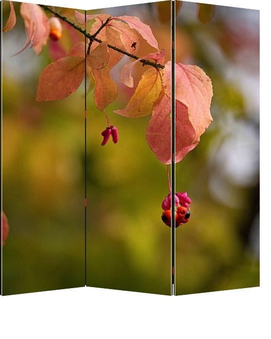 Описание ширмы Нежно-розовые цвета осеннего бересклета украсят ваш дом, добавят тонкости вашим чувствам, напомнит вам моменты общения с природой, перенесет в мир красок и цветов, свежести, первозданной радости бытия...