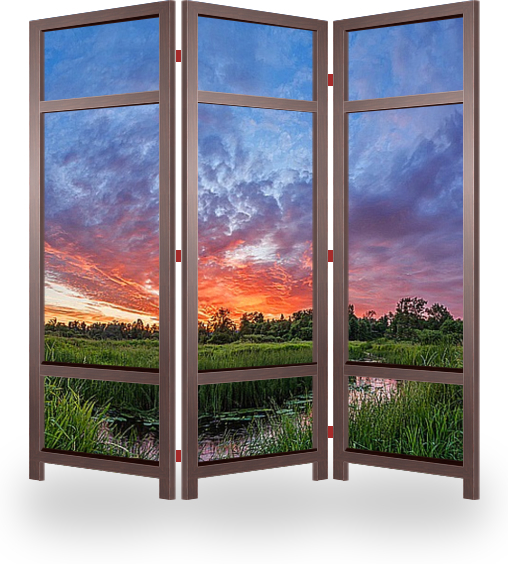 Описание ширмы Закат солнца на берегу реки летним вечером. Россия, Ленинградская область