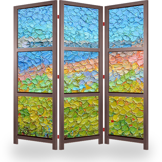 Ширма эконом отлично подойдет для временного размещения, рекламы, для отгораживания объектов интерьера и его дополнения. Лицевая сторона с изображением, обратная сторона открытый каркас