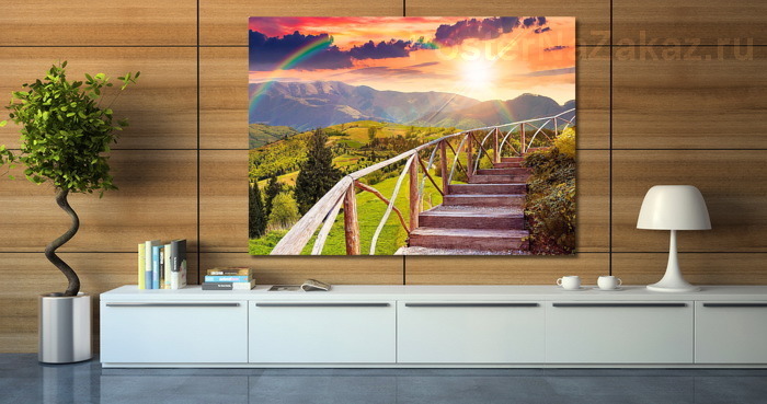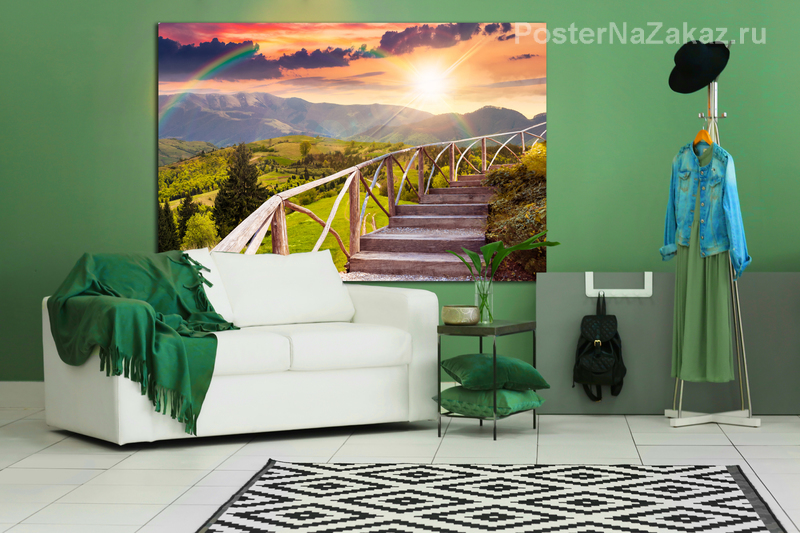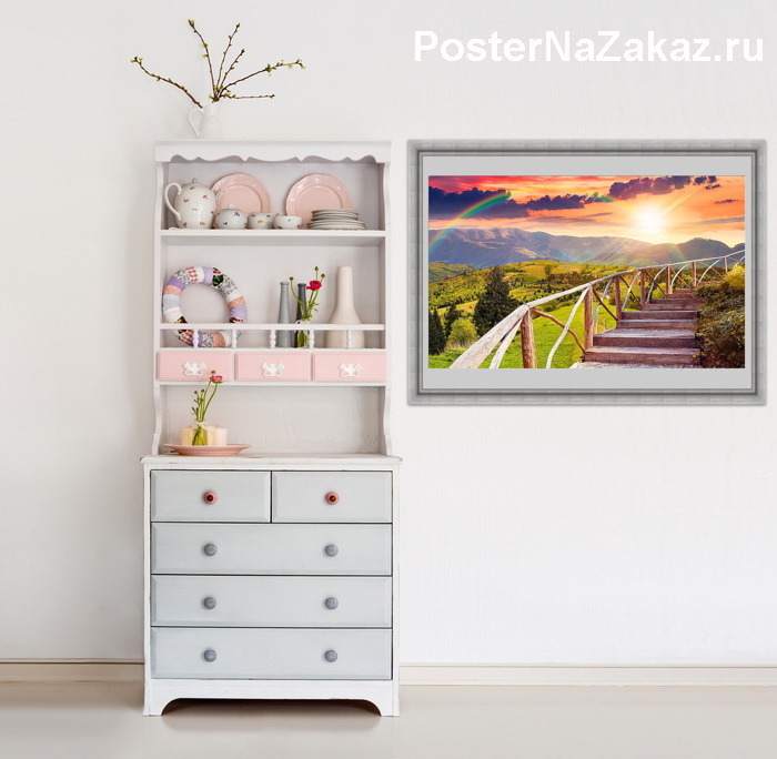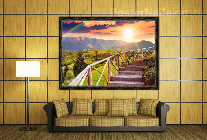 Описание ширмы Постер с изображением восхода солнца в горах, прекрасное и интересное дополнение к оформлению вашей комнаты