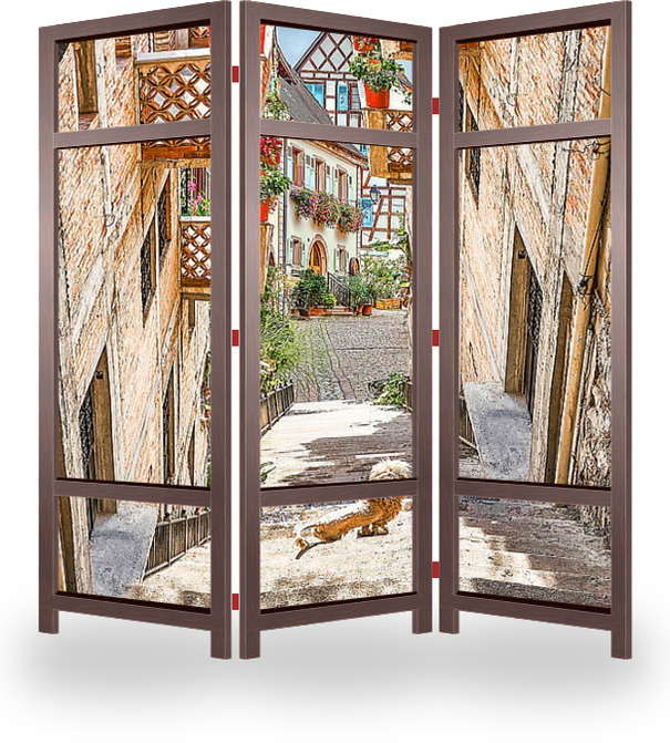 Описание ширмы Постер с изображением цветущих улочек и солнечного дня, отличное и интересное дополнение к оформлению вашей комнаты