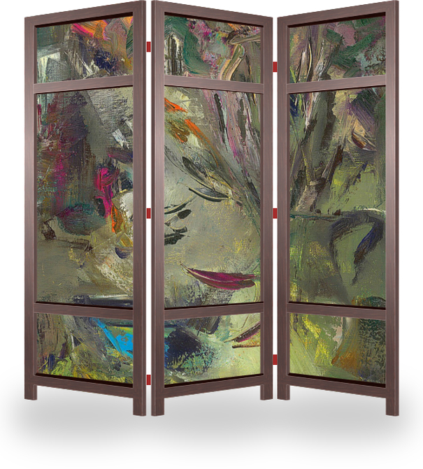 Описание ширмы натюрморт с голубой чашкой- абстрактное полотно под впечатлением реалистического натюрморта