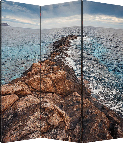 Описание ширмы Фото сделано на острове Тенерифе. Во время извержения вулкана Тейде лава уходила в океан, чем и образовались удивительные сооружения.