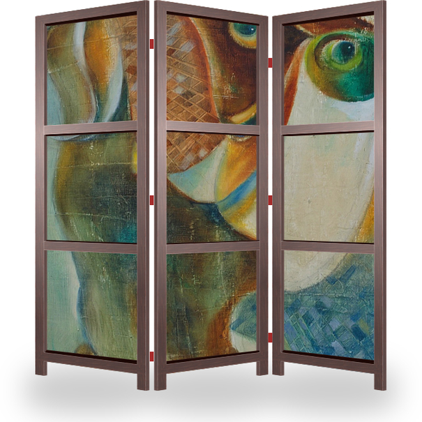Описание ширмы Работа выполнена маслом на холсте. Будет интересна любителям современного искусства - стилей авангард, поп-арт. Прекрасно дополнит интерьер любого помещения от офиса до жилой комнаты. Станет отличным подарком