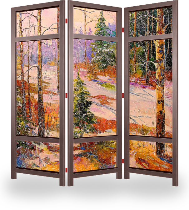 Ширма эконом отлично подойдет для временного размещения, рекламы, для отгораживания объектов интерьера и его дополнения. Лицевая сторона с изображением, обратная сторона открытый каркас
