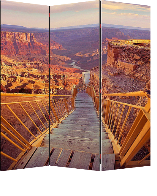 Описание ширмы Постер с изображением лестницы, ведущей вглубь Большого каньона ранним утром украсит и дополнит Ваш интерьер. Прекрасно подойдет для спальни и гостиной.