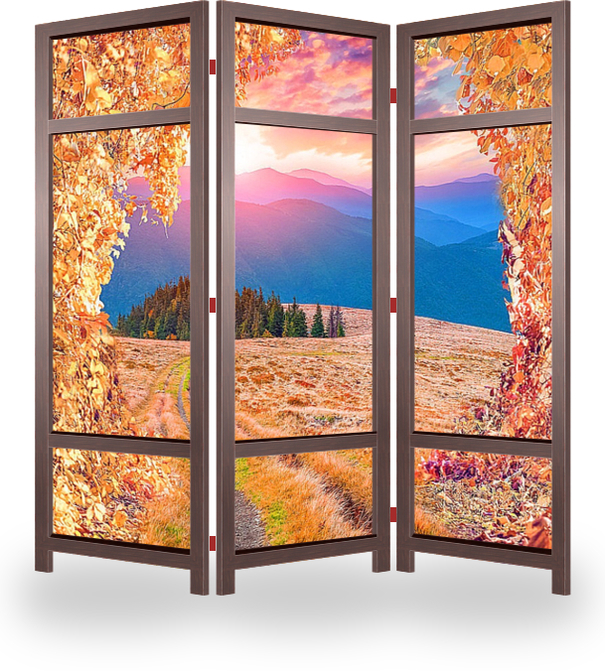Описание ширмы Постер с изображением осеннего пейзажа, отличное и интересное дополнение к оформлению вашей комнаты и интерьера