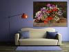 Описание ширмы Натюрморт с корзиной полевых цветов и ягодами клубники. . Яркая картина лета. Такой постер может украсить любое помещение вашего дома, квартиры, отеля.