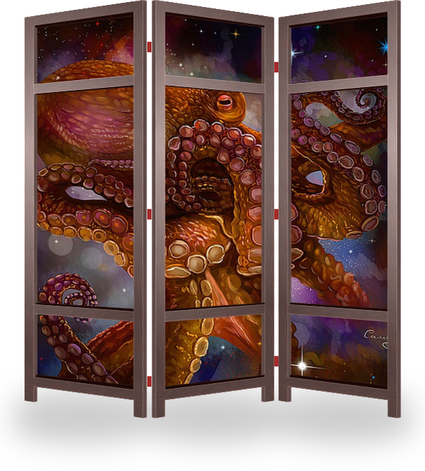Описание ширмы Осьмино?ги, или спру?товые — наиболее известные представители головоногих моллюсков. Типичные осьминоги...