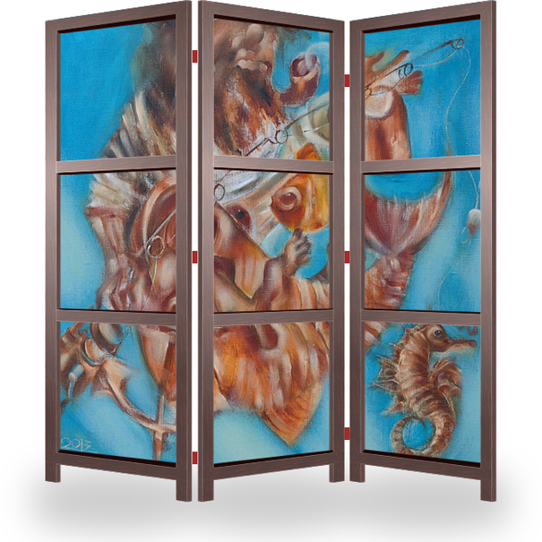 Описание ширмы Работа выполнена маслом на холсте. Будет интересна любителям современного искусства - стилей авангард, поп-арт. Прекрасно дополнит интерьер любого помещения от офиса до жилой комнаты. Станет отличным подарком.